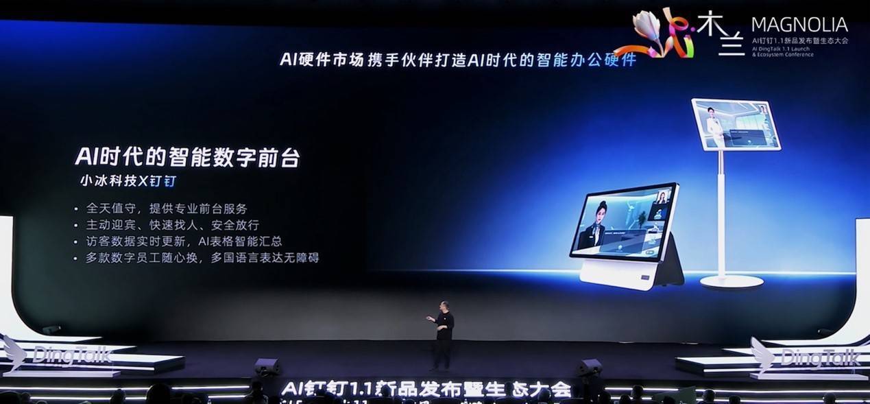 凤凰网科技讯 12月26日,钉钉与小冰在“AI钉钉1.1新品发布暨生态大会”上联合推出AI前台Hi1。该产品是钉钉AI产品生态中首款数字员工智能硬件,旨在通过AI智能接待重塑企业门面。